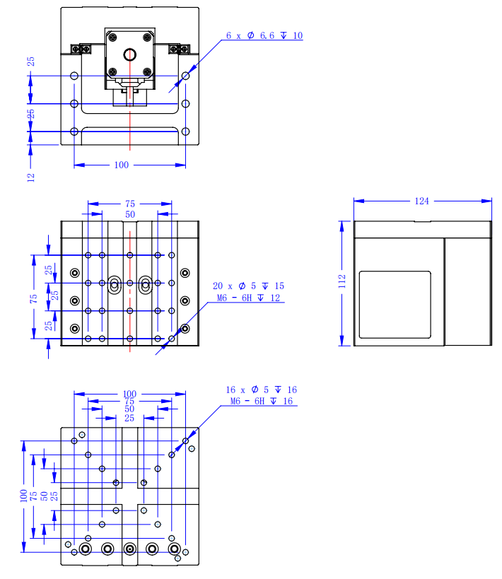 技术参数型号GCES-L20行程20mm台面尺寸124*124最大速度6mm/s丝杆类型滚珠丝杆导程1中心负载8KG电机类型步进电机最低高速112定位精度≤3μm自重4kg外形尺寸图